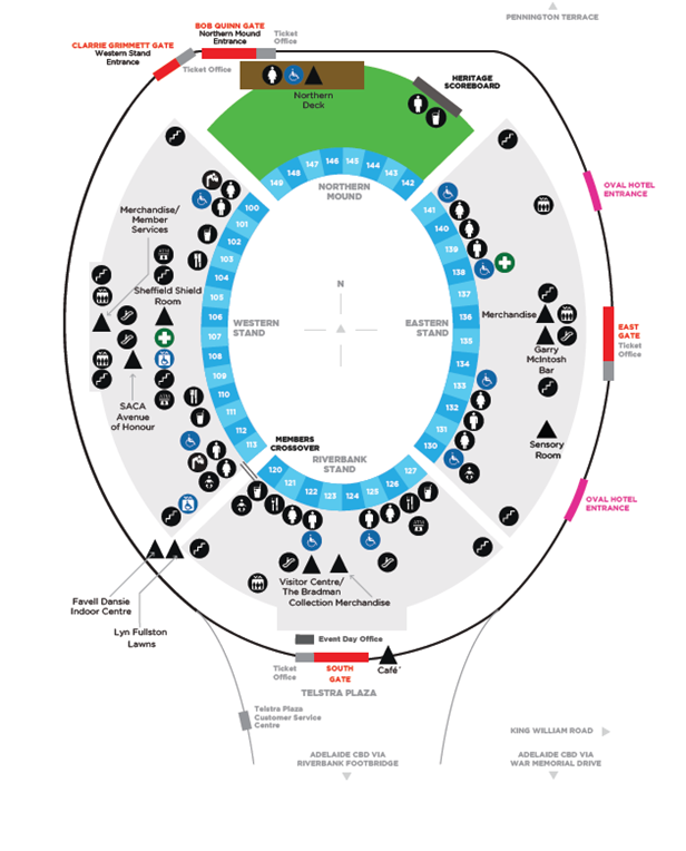 - Adelaide Oval has both ramps and lifts throughout the venue to provide safe access for wheelchair or mobility impaired visitors. Ramps are located near all stairs and lifts are located near all escalators. Please refer to Appendix B on page 5 of this document for details.